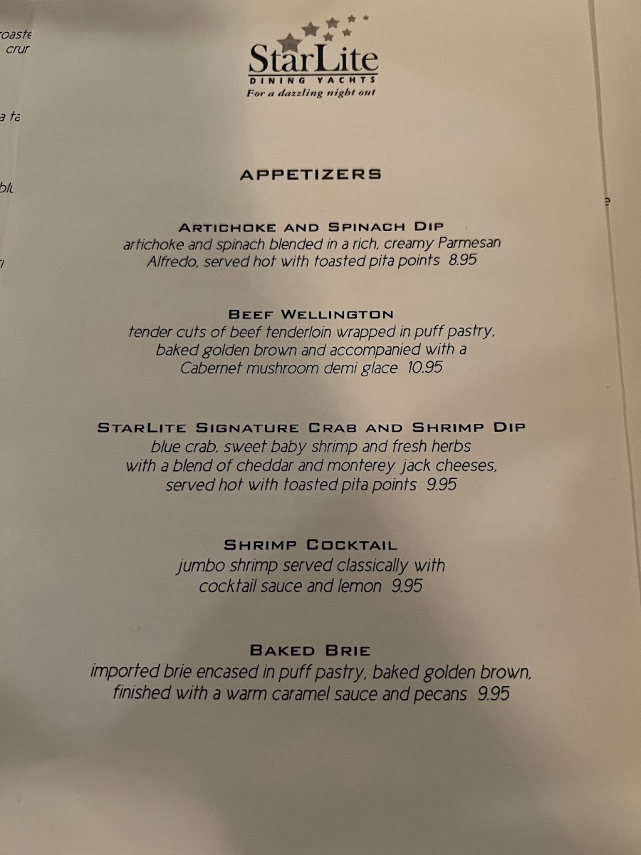 Introducing the menu at StarLite Majesty, an exceptional dinner cruise experience located in the heart of Clearwater Beach. Guests can indulge in a variety of exquisite dishes while enjoying majestic views of the Gulf waters. The culinary offerings include refreshing tropical salads, savory beef burgundy, and decadent caramel cheesecake, garnering rave reviews for their freshness and flavor.